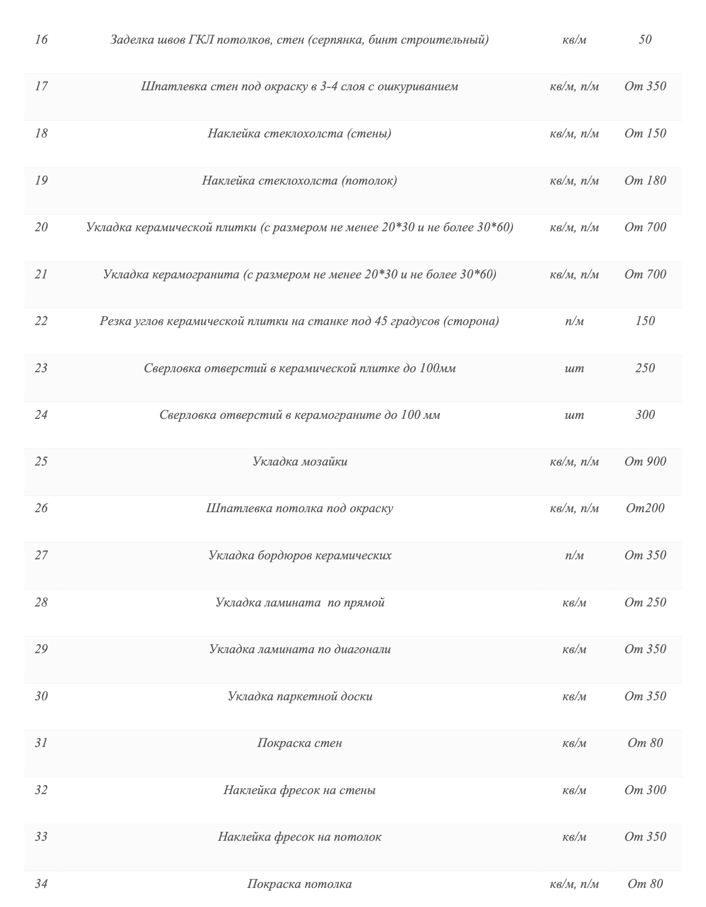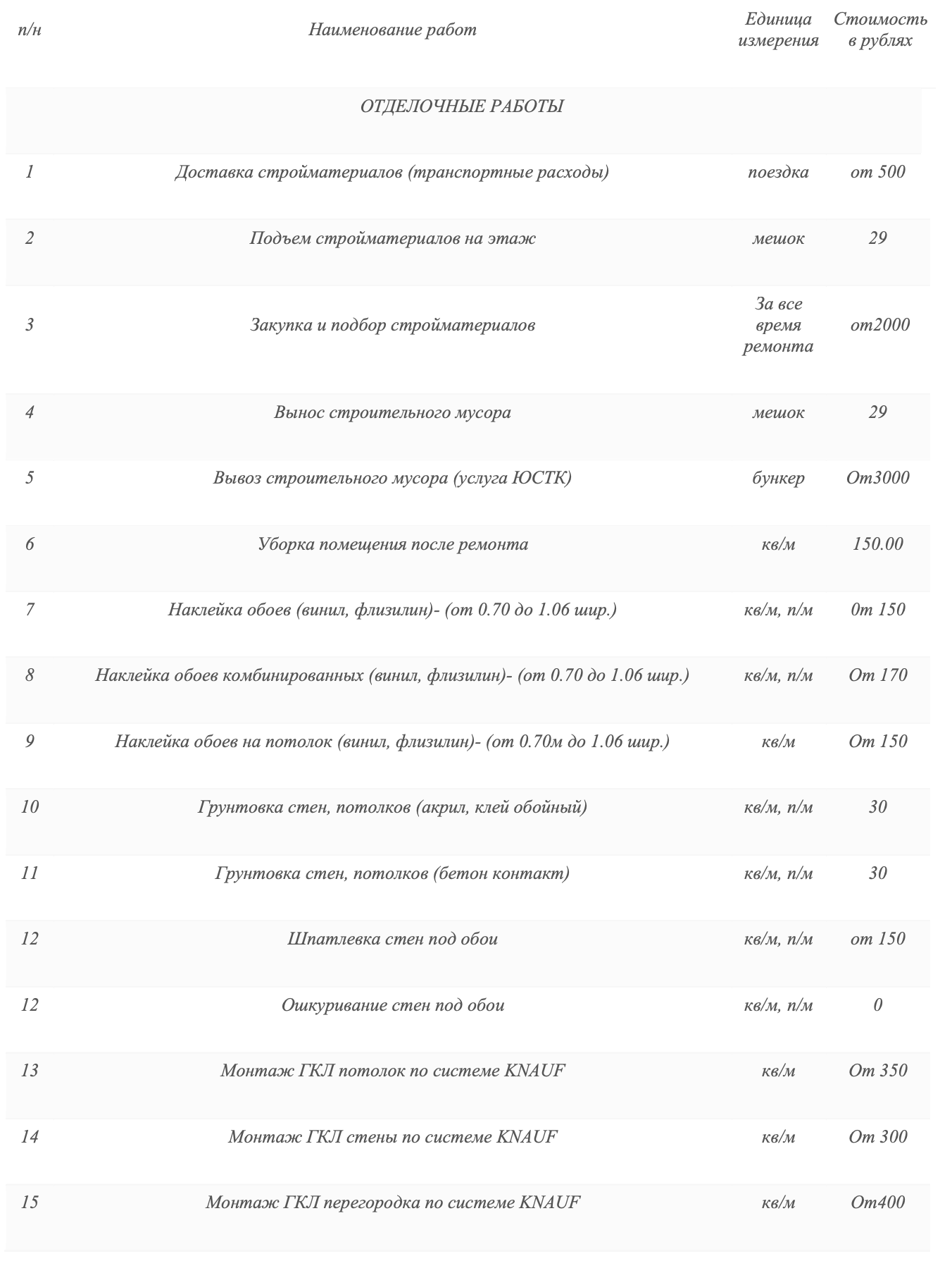 Скоро здесь появятся стоимость ремонтных и отделочных работ